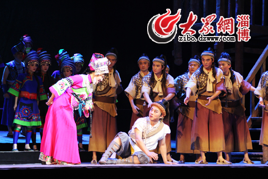 大眾網淄博10月16日訊(見習記者 孫奉娟)“妹娃要過河,是哪個來推我嘛!”10月16日晚上7點30分,湖北黃梅戲《妹娃要過河》在山東理工大學劇院上演。這部劇以湖北民歌《龍船調》為框架,以青年船夫阿龍和土家族姑娘阿朵的愛情故事為線索,以黃梅戲和土家族歌舞相結合的方式予以呈現,既有黃梅戲的魅力,也有土家族歌舞的美感,讓人欣心悅目。