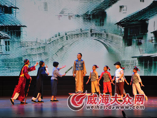 據(jù)了解,《看社戲》從創(chuàng)作最初就是以“群星獎”為目標的,在參賽之前經(jīng)常在當?shù)氐膹V場等地進行演出,受到百姓的一致好評。參賽的演員中,年齡最小的8歲,最大的也只有13歲。越城區(qū)少兒藝術(shù)學校校長金鳳仙告訴記者,經(jīng)過平時的多場演出,孩子們的表演已經(jīng)越磨越精,并有著豐富的舞臺經(jīng)驗,盡管是第一次登上這么大的舞臺,但是依然表演得很好。
