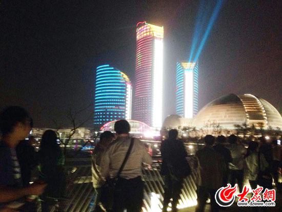 大眾網濟南10月11日訊(記者 尹海洋)晚上7:00,天色暗下來了,十藝節的主場館——省會大劇院的夜景美輪美奐,前來參加開幕式的觀眾紛紛拿出手機和相機,或者拍攝大劇院,或者在大劇院前合影留念。