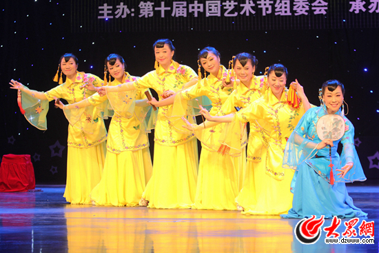 在整場演出中,由山東省濟南市群眾藝術館群星藝術團帶來山東琴書《親家親》可謂獲得了滿堂彩。《親家親》講述了單身老年人的婚戀問題,詼諧幽默的唱詞中融合了“坑爹”等網絡詞語,不時讓觀眾爆發出一陣陣笑聲。4位主要演員一唱一和、邊唱邊演,表演傳神動人,贏得現場觀眾熱烈的掌聲和叫好聲。“我得40多年沒聽過琴書了,今天一聽,還真是原來的調調啊!”現場觀眾評審孟憲蕓看完演出后,頗為激動地說。
