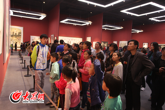 大眾網濟南10月21日訊(記者 馬俊驥 通訊員 于霞)開展9天來,第十屆中國藝術節·全國優秀美術作品展吸引了眾多喜歡美術的觀眾,參展人數與日俱增。上周末,山東美術館迎來參展最高峰。據統計,10月19日至20日,山東美術館共接待觀眾人數達39000余人,截至10月20日,“十藝節”全國優秀美術作品展參展總人數已超過13萬人。