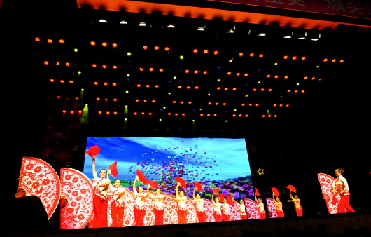 10月25日,“群星獎(jiǎng)”頒獎(jiǎng)儀式在威海舉行,煙臺(tái)市群眾藝術(shù)館的演員在頒獎(jiǎng)儀式上表演舞蹈。 □新華社發(fā)