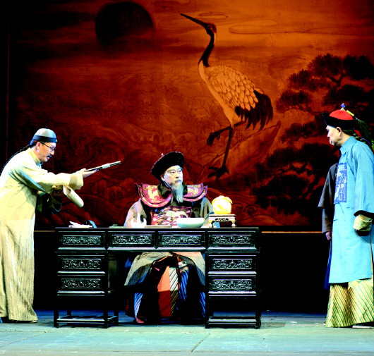 支撐起這部戲的三個(gè)主要人物嚴(yán)復(fù)、李鴻章、賈吳官的演員表演應(yīng)該說(shuō)是非常稱職的。張林所扮演的嚴(yán)復(fù),由出場(chǎng)時(shí)年輕氣盛所導(dǎo)致的清孤自傲和桀驁不馴,至不得志而沉淪,成為“癮君子”;從抱有“報(bào)國(guó)”情懷的青年才俊到逐漸成為通達(dá)世事人生的哲人,其心理路程和戲劇動(dòng)作行為線脈展示得非常清晰,且賦予了其鮮明的個(gè)性、血肉,可信,可愛(ài),可敬;而顏勤所飾演的賈吳官,則把晚清官場(chǎng)中的一個(gè)良知并沒(méi)有泯滅、為了生存而不得不在某些方面奴顏婢膝、但卻狡黠通達(dá)的性格,刻畫(huà)得非常傳神,從而給觀眾留下了深刻的印象,頗獲好評(píng)。