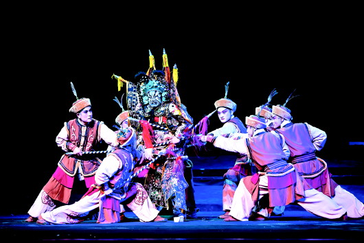 《兩狼山上》可稱道的整體水平,啟示我們對戲曲創作再次作這樣的思考。傳統的“演員中心論”,后來的“劇本中心論”、“導演中心論”都有可能導致藝術整體的傾斜,以“劇目”為中心,為旗幟,凝聚各部門各環節,應該成為新時代戲劇創作的最高原則。
