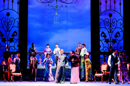 舞臺(tái)表演藝術(shù)的魅力,永遠(yuǎn)有提高的可能性和空間。《瑞蚨祥》這個(gè)戲要繼續(xù)打磨,繼續(xù)提高,也還是有空間的。就演員創(chuàng)作來講,首要的,是要對孟洛川這個(gè)主要人物的性格發(fā)展,他的心理過程,他內(nèi)心沖突最激烈的地方,有一個(gè)整體的理解和把握,有一個(gè)唱念做表的整體布局。一句話,就是要有一個(gè)演員的表演總譜,讓觀眾看到,還要看清楚孟洛川的性格起點(diǎn)是什么,發(fā)展的層次是什么,他最后走向了哪里。這是演員對角色深入理解、體驗(yàn)之后作出的整體安排。孟洛川在劇中的性格發(fā)展其實(shí)是非常有戲劇性的。從一出場表現(xiàn)出來的年輕商務(wù)主政的傲氣、自信,居然炒了艾老掌柜的魷魚;到引進(jìn)洋紗兵敗上海灘,艾隆標(biāo)強(qiáng)盤瑞蚨祥,布源被斷身陷絕境,在一系列挫折、失敗、反思之后有所應(yīng)變;再到最后,組織民間織戶,走工商結(jié)合之路,意識(shí)到要“經(jīng)道義,營民生”,與艾隆標(biāo)重歸兄弟之好。這個(gè)脈絡(luò)是層次清楚的,演員的創(chuàng)作,特別是演員的唱腔,必須沿著這個(gè)脈絡(luò)進(jìn)行布局。在人物性格發(fā)展的重要節(jié)點(diǎn)上,要下功夫把重要唱段處理好,把身段表情處理好,舞臺(tái)上就會(huì)更加出彩,更加好看。