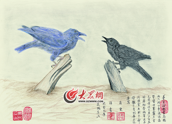 夢(mèng)里涂鴉畫(huà)烏鴉,兩只張口爭(zhēng)說(shuō)話,