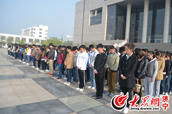 在默哀的三分鐘里,記者看到許多人落下了淚水。默哀結束后,濟寧學院團委書記李凡路號召大家以實際行動表達自己對災區人民的關愛,全力以赴向災區人民提供力所能及的支持和幫助。據介紹,哀悼活動結束后學校還將開展一系列的防災逃生教育、捐款支援、簽名紀念活動。