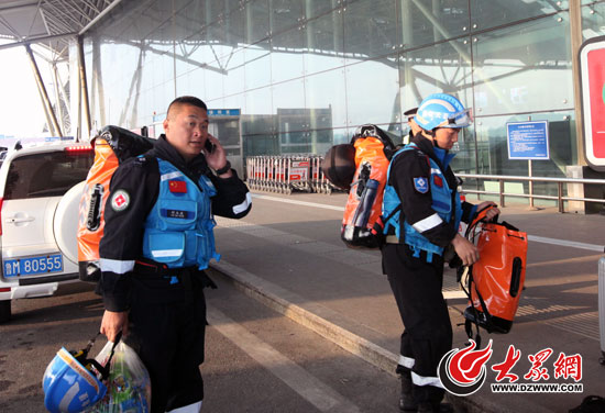 山東省紅十字會藍天救援隊在濟南機場整裝待發