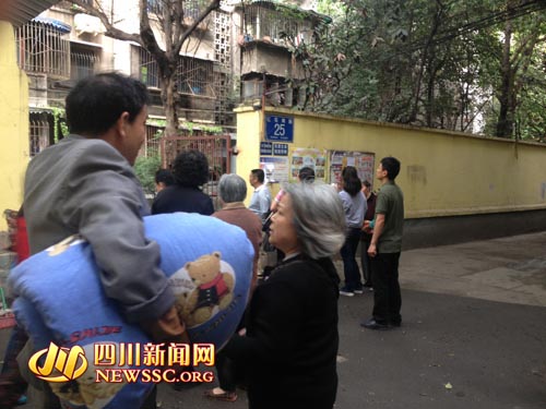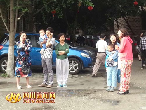 8點(diǎn)48分報(bào)道:【成都有市民拎上大包東西 準(zhǔn)備外出避難】不少市民跑到樓下等待,打電話,哭泣,紛紛議論。有不少人穿著睡衣,還有一男子裸著上身。有市民甚至已經(jīng)拎上了一大包東西,準(zhǔn)備外出避難,現(xiàn)在已經(jīng)有部分市民成群結(jié)隊(duì)往街面上走。