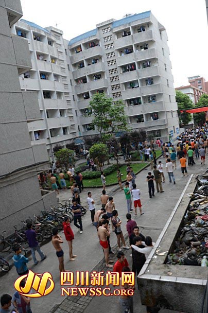08:02分,記者正在成都市一環(huán)路菊樂路口某高校內(nèi),感覺到強(qiáng)烈搖晃。記者看到,很多學(xué)生光著身子從宿舍往下跑。據(jù)成都體育學(xué)院學(xué)生王彬介紹,當(dāng)時(shí)宿舍里的床鋪?zhàn)笥覐?qiáng)烈搖晃10到15秒。