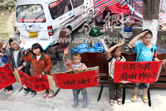 震區(qū)娃娃舉標(biāo)語(yǔ) 感謝全國(guó)好心人