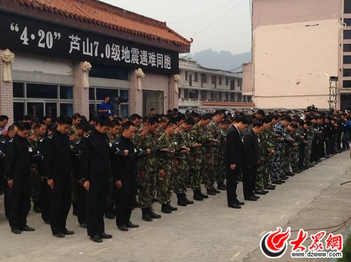 大眾網蘆山4月27日訊特派記者 盛堃 尹海洋 李兆輝)今天距離雅安“4·20”地震已經7天了,今早8:00開始,大眾網特派記者在蘆山縣政府廣場現場直播哀悼活動。今天上午8點02分,四川全省深切哀悼在“4·20”蘆山7.0級地震中遇難的同胞。四川省委省政府主要領導、參與救援戰士和自發趕來的群眾在蘆山縣人民政府廣場參與哀悼活動。
