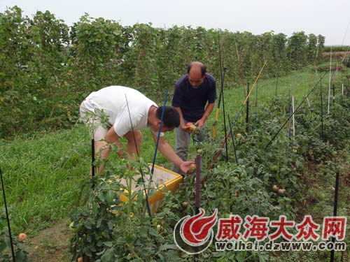 為了方便下地干活,谷鳴特地準備了“工作服”。他覺得來干活就得像個干活的樣,穿的嶄新的,村民也不好意思讓插手。生活中跟大家一樣,大家也會愿意和自己多交心。記者在采訪當天跟隨谷鳴來到地里,他對地里的活已經駕輕就熟。一邊摘著西紅柿,一邊和于先訓討論地里各種蔬菜的長勢,還和于先訓計劃著下一步種菜的打算。村委主任于先浩告訴記者:“這個‘第一書記’真不像城里來的,比我們還像農民樣。”