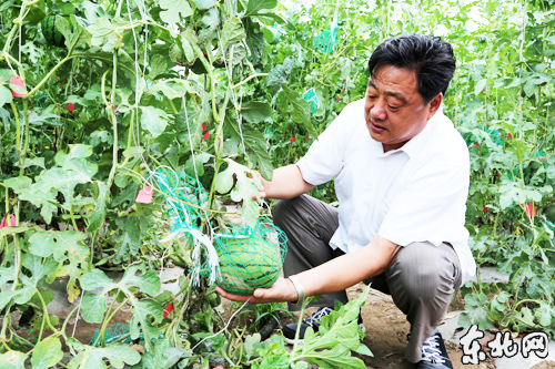 付華廷向記者介紹溫室大棚內的禮品西瓜。東北網記者 侯巍 攝
