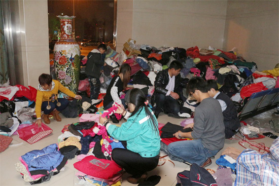 夜幕下的志愿者分揀