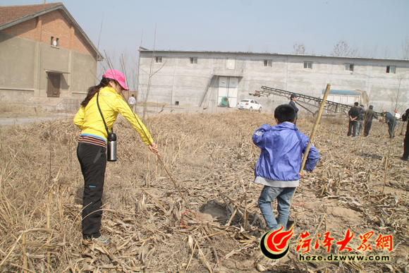 母子二人齊心合力共植樹