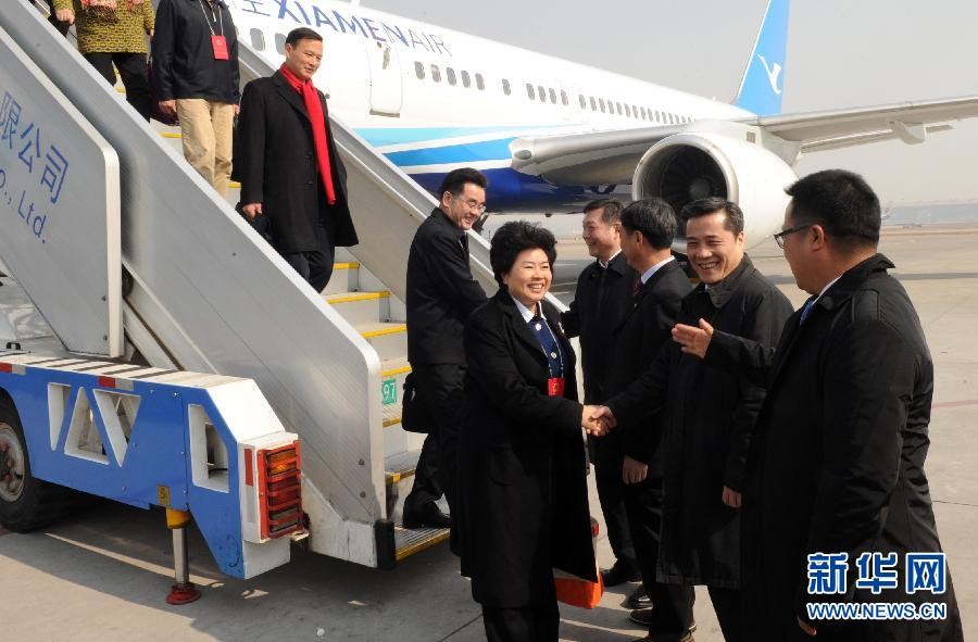 3月2日,出席十二屆全國人大二次會議的福建代表團乘飛機抵達北京首都國際機場。新華社記者 張鐸 攝