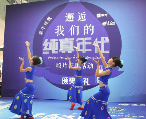 大眾網(wǎng)與蒙牛共同主辦的“邂逅我們的純真年代照片征集活動(dòng)”頒獎(jiǎng)典禮今日在濟(jì)南和諧廣場圓滿落幕。下午2:00,榮獲各個(gè)獎(jiǎng)項(xiàng)的網(wǎng)友們齊聚和諧廣場一樓中庭參加頒獎(jiǎng)典禮現(xiàn)場,觀賞活動(dòng)數(shù)月以來征集、優(yōu)選出的百幅優(yōu)秀作品,在一片藍(lán)色美麗的背景中體驗(yàn)點(diǎn)滴純粹,現(xiàn)場還品嘗到了蒙牛純甄酸牛奶的營養(yǎng)和美味。
