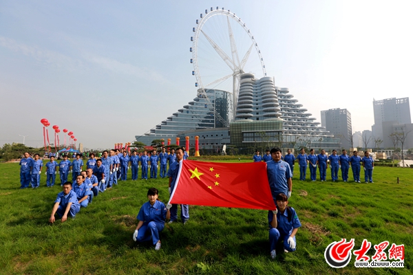 大眾網聊城記者站的全體同事來到光岳樓前,和國旗合影,為中國點贊!