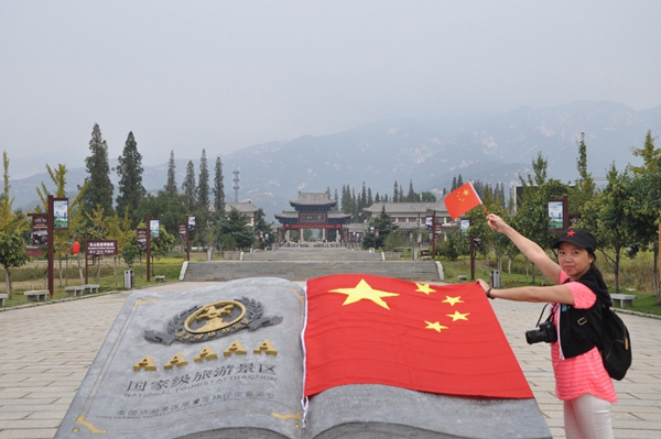 貴陽游客在臨沂五賢祠與國旗合影為中國點贊