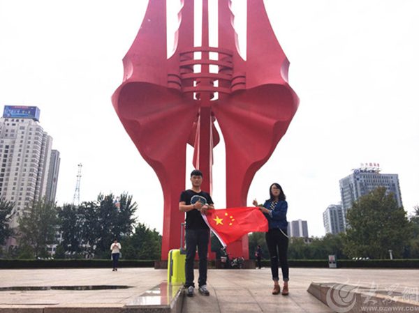 臨沂:與國旗合影,為中國點贊
