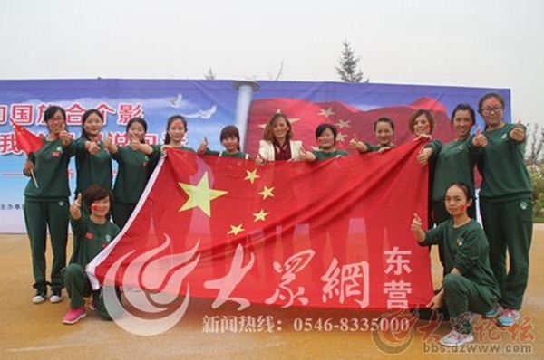 9月23日,正值秋分時節,東營大眾網工作人員在東營新世紀門廣場前,與國旗合影留念,為中國點贊。