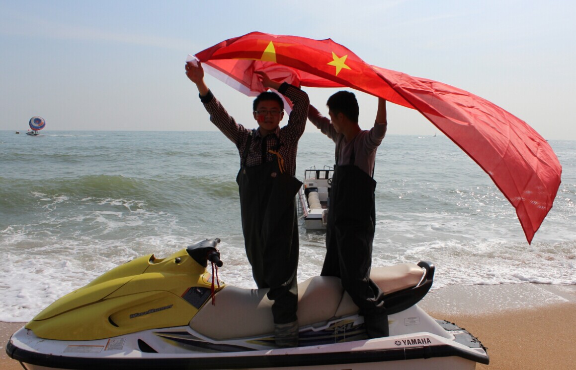 日照市萬平口景區(qū),日照某兒童培訓(xùn)學(xué)校的老師們共同與國旗合影,為祖國點(diǎn)贊。