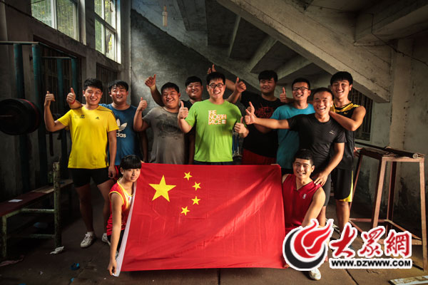 身著運動服,臉上青春洋溢。濟南高三體育生在訓練場地與國旗合影,為祖國點贊。