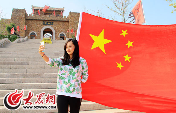在沂南紅石寨,美麗的網(wǎng)友用手機(jī)自拍與國旗合影,為祖國點(diǎn)贊!