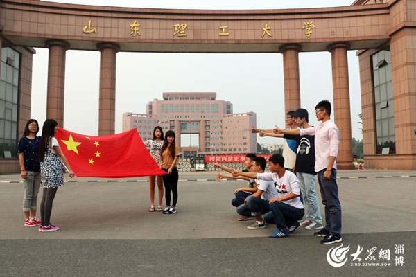 今年“十一”,時值建國65周年,山東理工大學文學院的學生在理工大學南門和稷下湖邊與國旗合影,為祖國點贊送祝福。