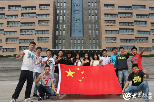 為慶祝建國65周年,淄博職業學院的14名學生豎起大拇指為祖國點贊,為祖國趕到驕傲。
