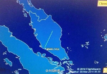 #快訊#【失去聯系的馬來西亞航空航班原定飛往北京】據外媒報道,馬來西亞航空稱一架由吉隆坡飛往北京的航班失去聯系,該飛機上載有239人。航班號是MH370。