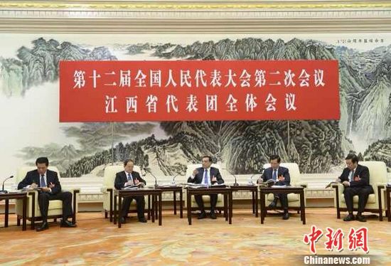 9日下午,李克強參加江西代表團討論。中新社 劉震 攝