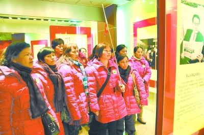 海南“巾幗割膠班”參觀光明日報社。 蔣新軍攝