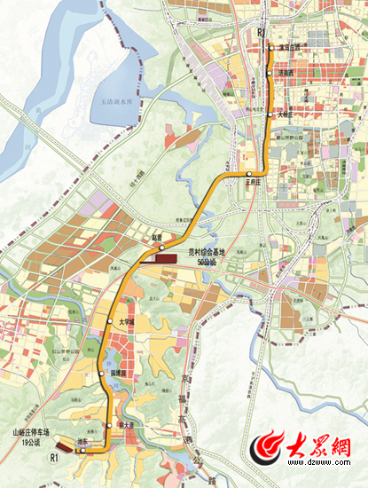 濟聊城際鐵路濟南至長清線(暨軌道交通R1線)線路走向示意圖