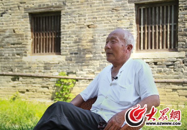 李敬善老人侃侃而談,講述彈孔墻的來歷。大眾網記者攝
