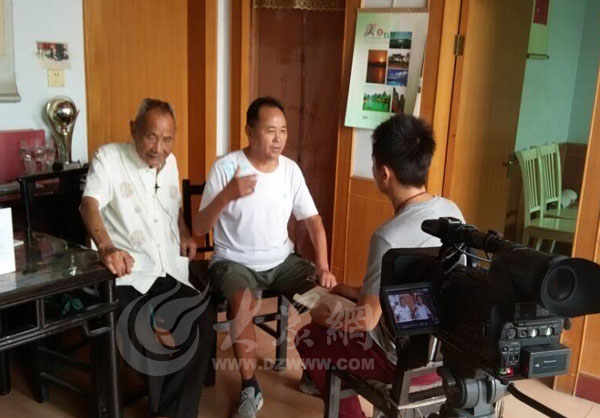 96歲高齡的王清松老人與兒子王來玉接受大眾網記者采訪,王來玉向大眾網記者講述了父親經歷的臺兒莊大戰。大眾網記者攝