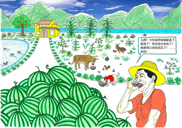 活動自開展以來,全國各地網友踴躍參與,積極通過郵箱、郵寄等形式向大眾網投稿。山西網友梁俊琦的作品《我的航天夢》描繪了一位小男孩盼望登月、祝愿國家航天工程取得舉世矚目的成績的夢想;大連網友苗杰的作品《在城里的大廣場留個影》描述了改革開放后山東發生了翻天覆地的變化,貧困山區的孩子第一次進城在大廣場留個影的場景;網友“冰凌”的作品《報喜》從民生角度出發,講述了魯中山區一派豐收的景象,父親高興地給遠方的孩子電話報喜:“兒啊,今年政府給咱家蓋新房了!西瓜也大豐收了……”