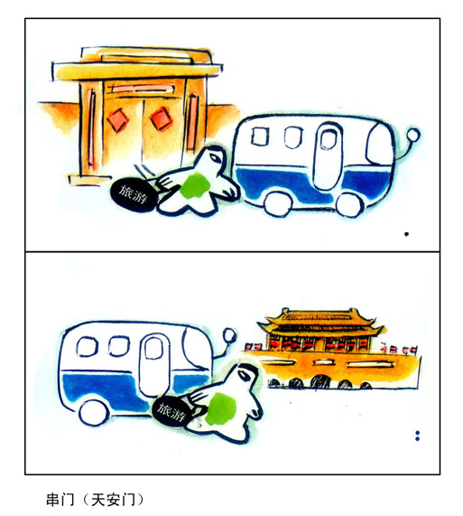 漫畫類二等獎《串門(天安門)》 作者:郝增茂