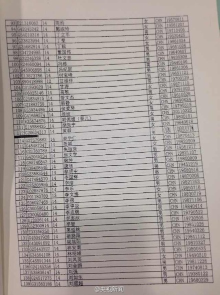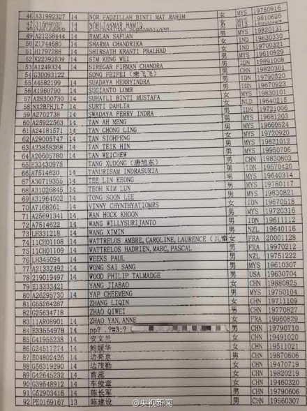 #馬航飛機失聯#【MH370航班乘客名單】馬來西亞航空公司飛往北京的MH370航班,于凌晨2:40失聯。機上共有239人,載有154名中國乘客。據邊檢提供的名單,機上有兩名中國幼童(一男一女)。