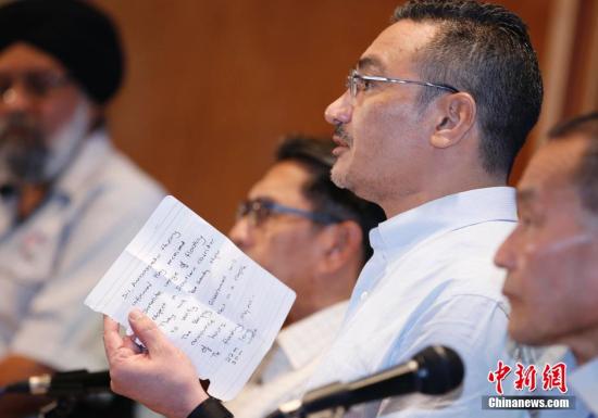 3月22日,馬來(lái)西亞官方在吉隆坡召開的新聞發(fā)布會(huì)即將結(jié)束之時(shí),馬代理交通部長(zhǎng)希沙姆丁·侯賽因突然拿出一個(gè)字條對(duì)在場(chǎng)記者說(shuō):“我剛從中國(guó)駐馬來(lái)西亞大使館得到消息,中方衛(wèi)星在南印度洋海域發(fā)現(xiàn)了一個(gè)大型漂浮物,可能與失聯(lián)的MH370航班有關(guān)。”中新社發(fā) 劉關(guān)關(guān) 攝
