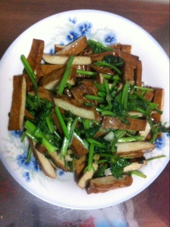 青菜豆腐絲,豆腐切段下鍋炸至金黃,再煸入青菜,蒜末打底的香氣撲鼻而來。這道菜是媽媽最常做的菜,雖不是極致的美味,卻一直是我心頭的味道。