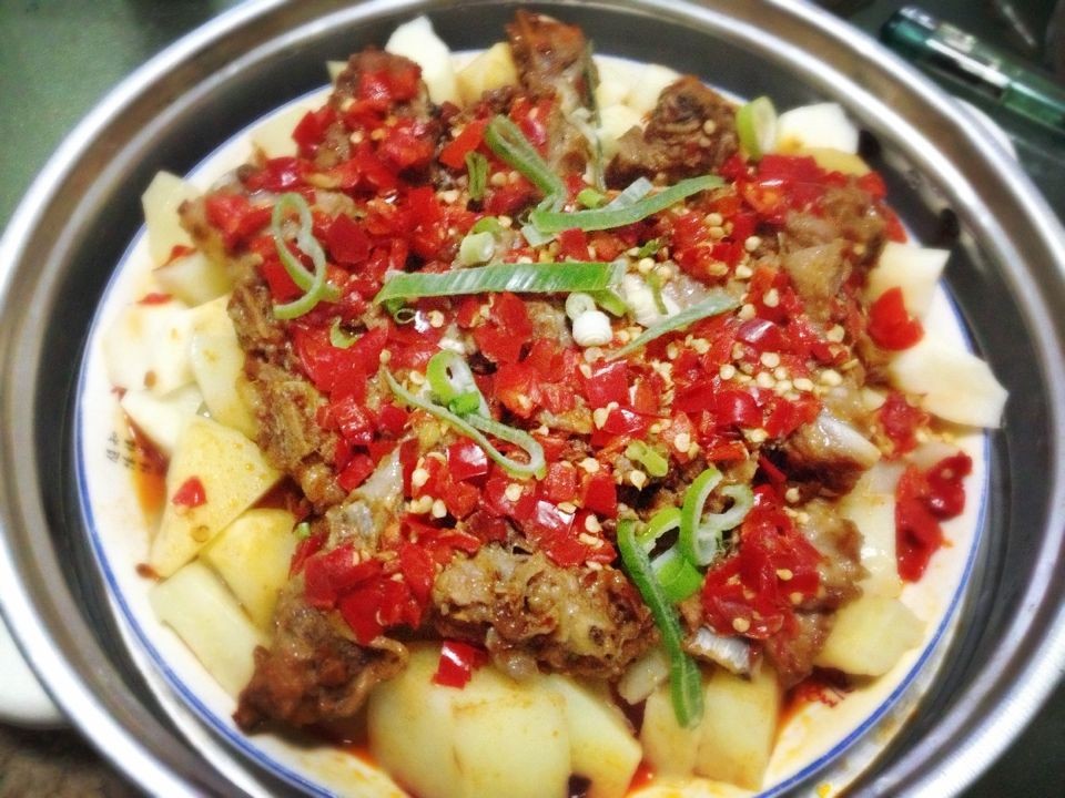 而今,媽媽似乎也不甘心于只做做面食給我吃的水準,在家用手機研究怎么做肉菜,無奈天賦使然,廚藝方面依舊未見太大起色。可不料有天媽媽神神秘秘的給我端出一屜蒸菜,好家伙,還是剁椒排骨。一邊端給我,還一邊埋怨,說少吃辣椒,對身體不好。而這道菜,又成了我新晉的最愛,不需復雜的工藝,沒有復雜的配料,簡簡單單,卻是依足了我的口味。