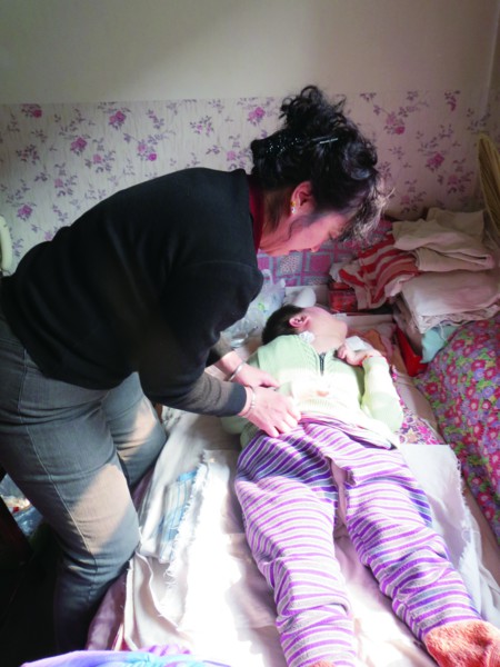 張娟幫完全不能自理的女兒翻身