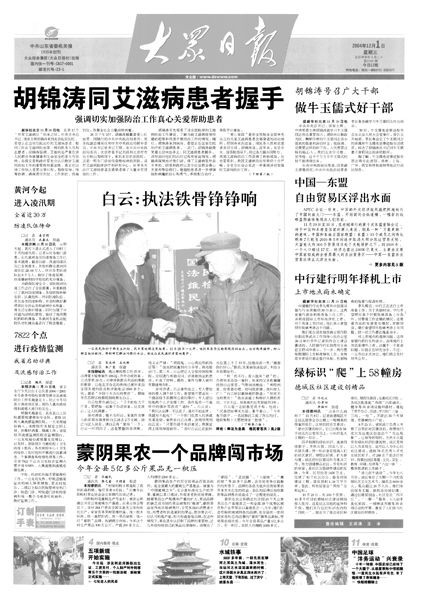 2004年本報頭版刊發白云事跡報道。
