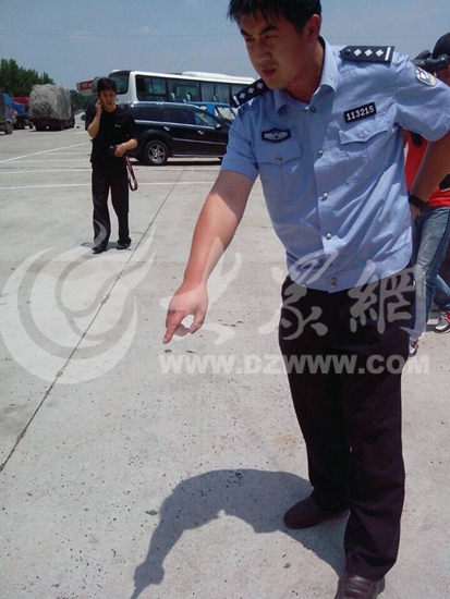 地上的黑色顆粒是當(dāng)時(shí)撞車后留下的碎玻璃(記者 李敏 攝)