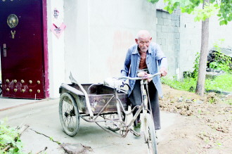 為了方便老人修路,張同新的女兒給他買了輛腳踏三輪車。老人說,這輛戰功赫赫的三輪車已有二十多年了,如今車漆已全部脫落,先后也已經換了十幾次車胎。