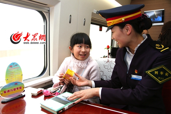 而針對動車組速度快,沿途停車時間短的特點,為了確保乘車兒童的安全乘車,他們還精心設計制作帶有兒童姓名、家長坐席等內容的“兒童乘車愛心提示卡”,避免乘車兒童因活潑好動而找不到家長。