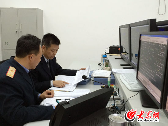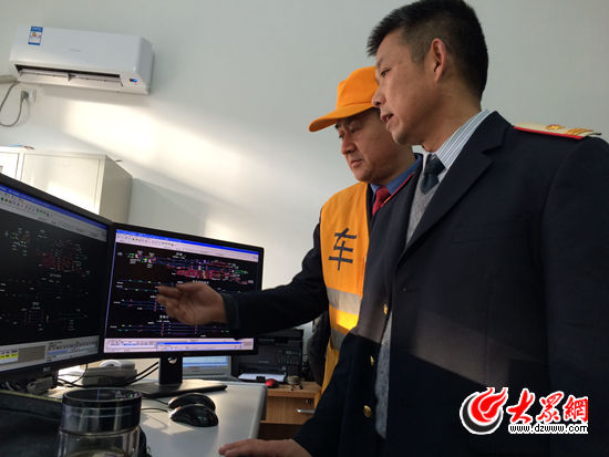 走進即墨北站行車室,一股暖烘烘的空氣迎面撲來。算不上寬敞的房間內擺滿了各種機器設備,幾名工作人員來回穿梭忙碌著,角落里還能看見一張簡易的行軍床。不過,房間內最顯眼的還是當中一字排開的10余臺計算機顯示器,值班員緊盯著屏幕上不斷閃爍的各種數字和線條,不時低頭進行操作記錄。