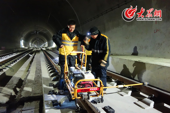 12月份,李魏林的工作地點(diǎn)在蓁山隧道,同樣是進(jìn)行測距、精調(diào),進(jìn)入隧道,濃度很高的水泥粉末撲面而來。李魏林說,因?yàn)樗淼辣谶未打磨好,墻壁上的水泥粉末彌漫到隧道里,“一天工作結(jié)束后,頭發(fā)都變白了!币贿M(jìn)入工作區(qū)域,李魏林便笑容收斂,推起軌檢儀開始了嚴(yán)謹(jǐn)?shù)墓ぷ鳎斑@里需要減0.5毫米,這個(gè)加0.8毫米”,隨后,李魏林熟練地?cái)Q下螺釘,更換扣件、墊板,使得誤差精確在1毫米之內(nèi)。